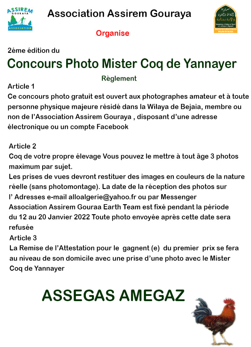 2eme édition du concours photo Mister Coq de YANNAYER