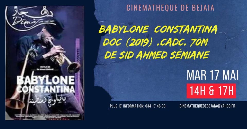 La cinémathèque de Bejaia diffuse le doc BABYLONE CONSTANTINA sortie en 2019 , CADC, 70M de Sid Ahmed Semiane le mardi 17 mai à 14h